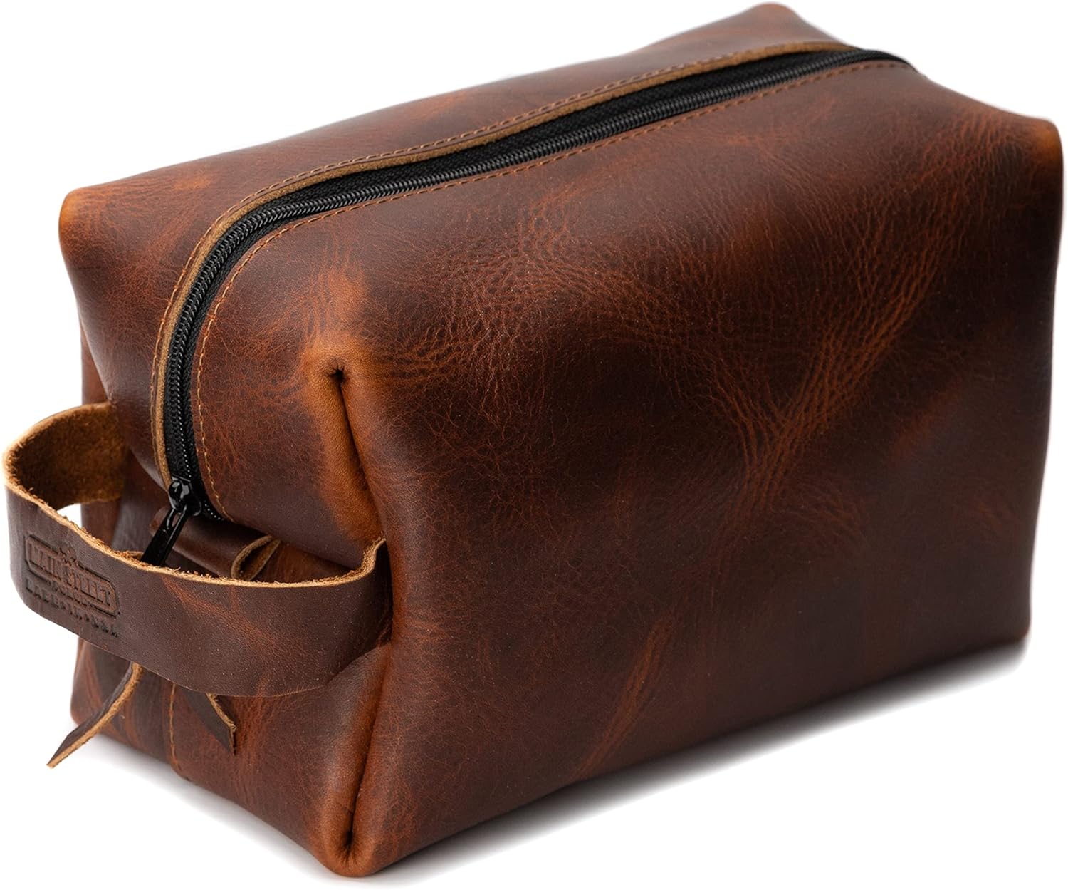 Classic Full-Grain Buff Leather Toiletry Bag for Travel