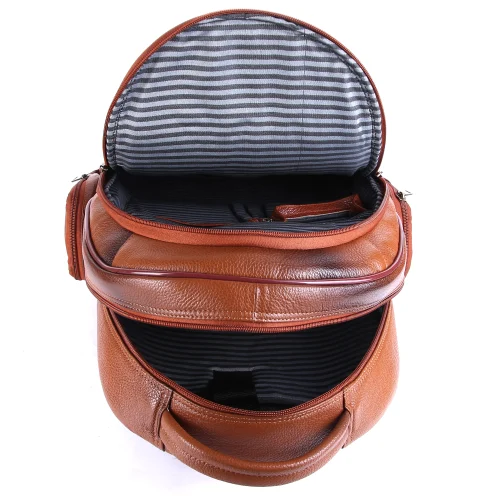 Elevate your everyday carry with the Eminence Voyage Zip Backpack, a perfect fusion of style and functionality. Expertly crafted from 100% genuine NDM two-tone leather, this backpack in classic tan is designed to age gracefully, offering timeless appeal. Each bag is carefully handcrafted by skilled artisans, ensuring durability and a luxurious feel.
