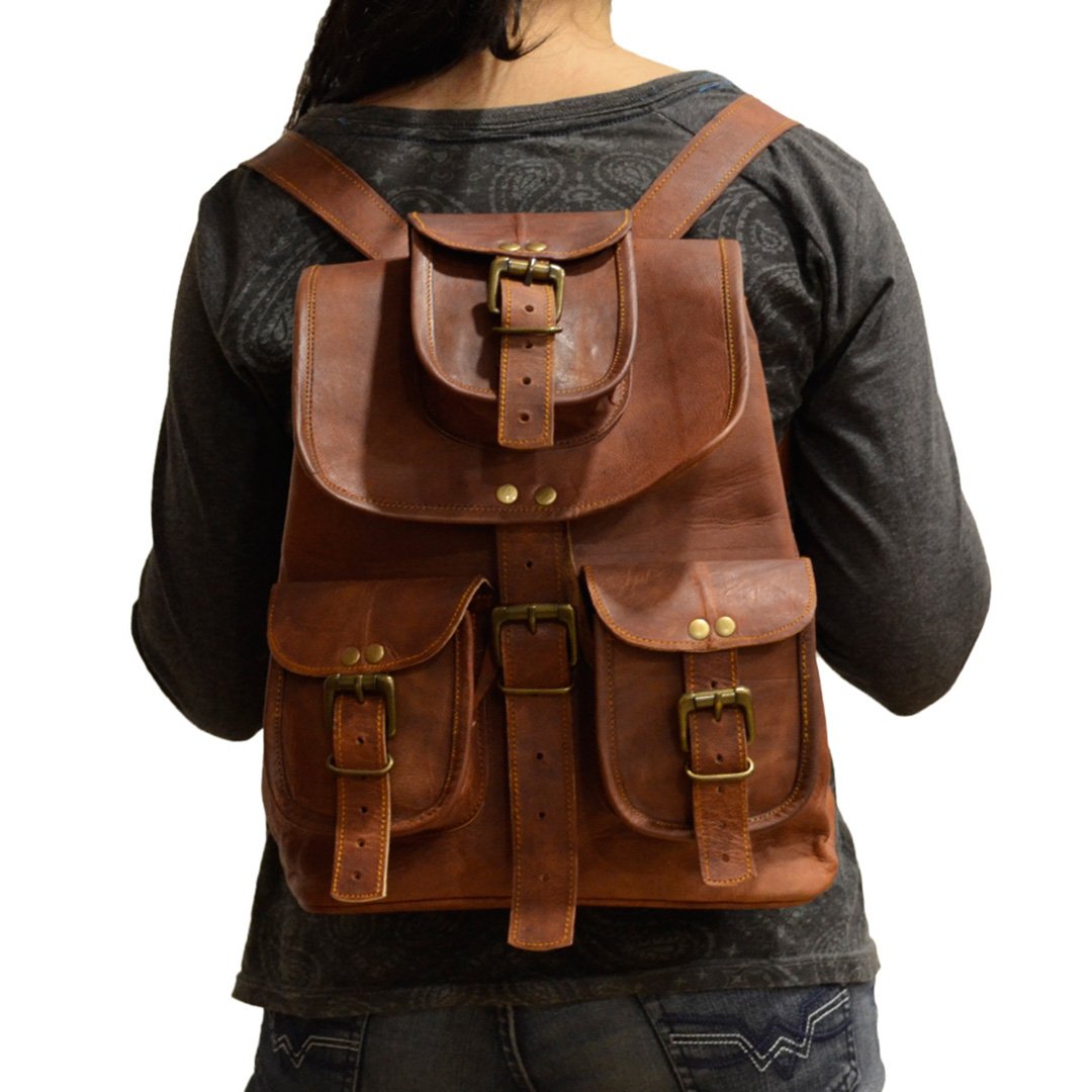 Handmade Genuine Leather Small Backpack for School, College & Travel