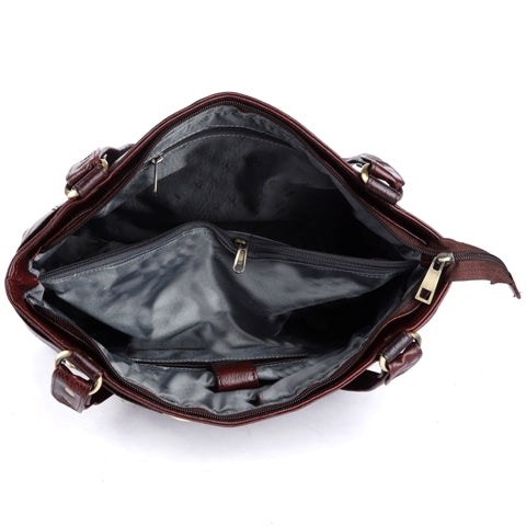 Crafted from top-layer leather, this handbag is ideal as a work tote or daily carry. Its classic, timeless design is available in multiple colors: Brown, Tan, Green, and Red.