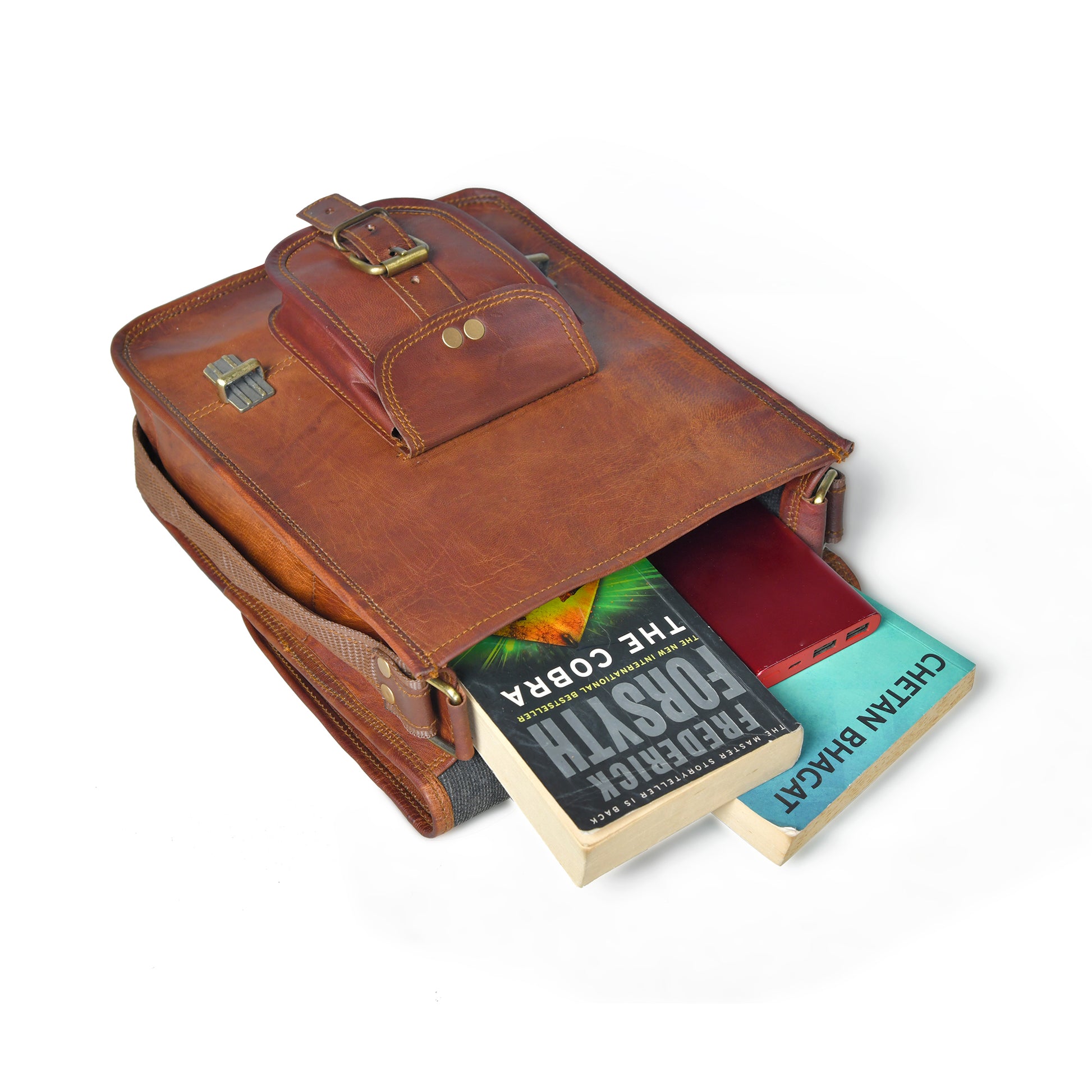 Introducing our Mini Leather Crossbody Sling Bag, the perfect blend of style and functionality. Crafted from premium top-grain goat leather, this compact yet spacious bag is designed to meet your everyday needs. With dimensions of 11" height, 9" width, and 3" depth, it offers ample space for essentials like an iPad, wallet, keys, and more, while maintaining a sleek and minimal profile. The adjustable shoulder strap ensures a comfortable fit, and the sturdy brass-finished hardware adds a touch of elegance. The bag features multiple compartments and pockets, providing organized storage and quick access to your items. The unique vintage look, achieved through the natural scars and marks on the leather, gives each bag its own character, making it a stylish companion for school, work, or city commuting.